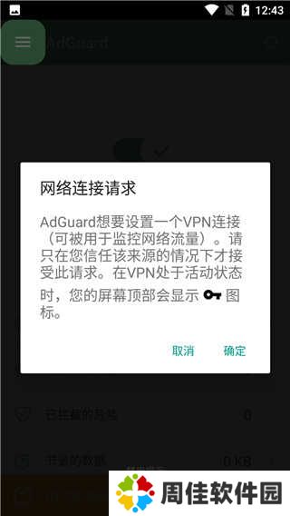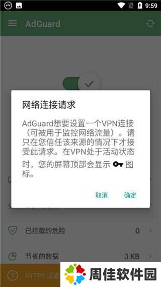 3、点击确定接受AdGuard的网络连接请求;