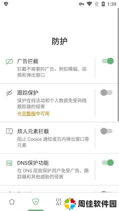 免费版本可极好的移除浏览器内的广告,但不能过滤其它应用的流?量。其也没有安全浏览功能。