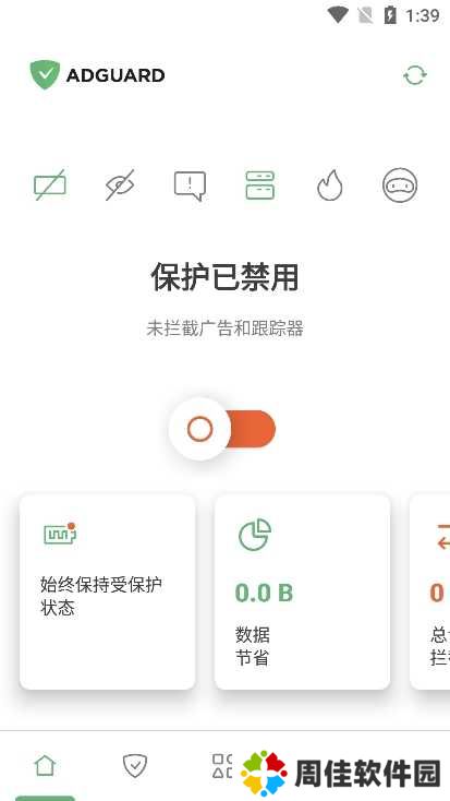 1、在本站下载安装AdGuard专业版,进入软件后可以看到清爽的简体中文界面;