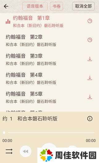 用户只需点击对照/和合本页面右下角的音频启动按钮,即可下载音频进行精读圣经有声播放,非常方便。