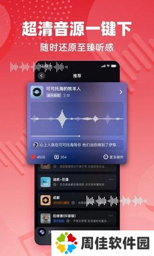 1、超清音源,无限下载,一键保存歌曲,高透声音质感,感受超真实的现场。