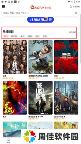 1、首先下载好本页面带来的茶杯狐cupfox正版app,打开首页,他会每天随时会大家推荐热播新剧。