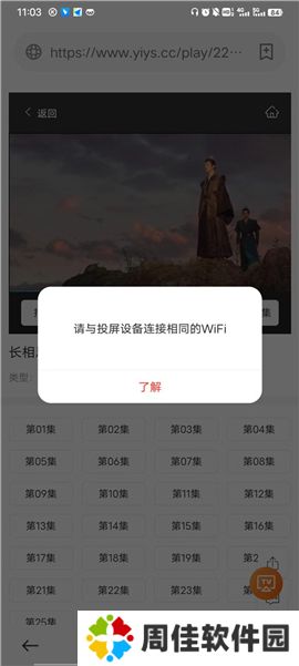 2、将手机和电视链接在同一个局域网中,之后弹出的窗口将会自动的进行搜索设备,看到相应的设备后点击即可进行投屏。
