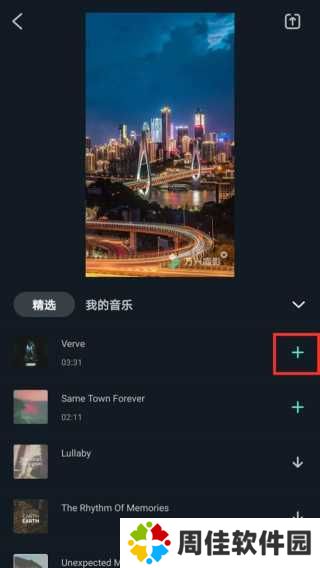 4、这里就会弹出海量的音效,选中我的音乐,就能够看见在自己本地中的音乐文件。(也可以选择软件中带有音效,下载后在点击“+”号就能够添加)