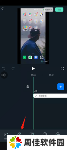 1.打开软件,进入编辑页面,然后点击“音乐”选项。