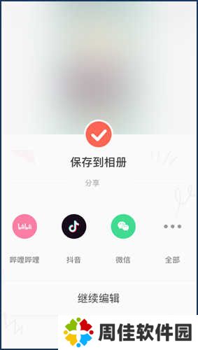点击右上角“导出”图标,渲染导出进度完成后,视频将自动导出到手机相册中。视频保存后,你还可以选择将此视频分享到哔哩哔哩、抖音、微信等平台中。