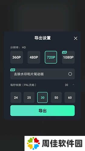 点击右上角“设置”图标,设置导出视频的分辨率及码率。