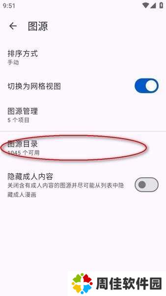 进入设置以后点击“图源”,并选择“图源目录”,如图所示。