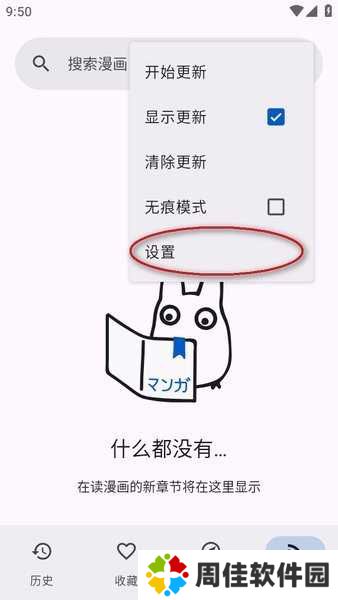 如果开始没有选择全部图源,进入以后就点击右上角的三个点,选择“设置”。