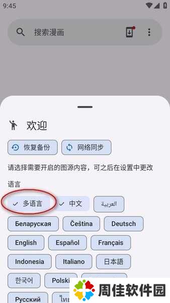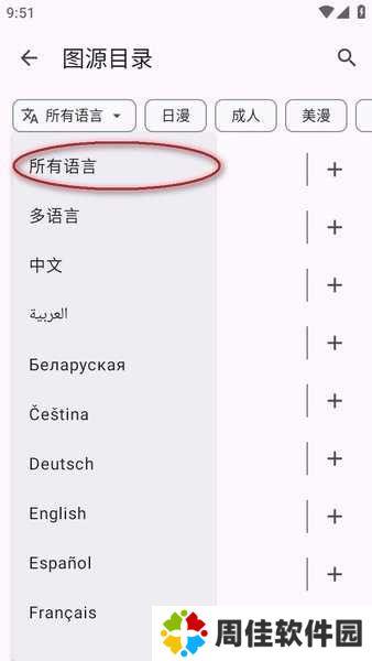 打开软件后,就可以选择图源,建议勾选多语言,这样就可以包括所有图源了。