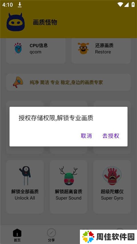 1、下载安装好画质怪兽xl6666cn画质怪兽,运行软件,这里软件会申请使用权限,我们选择同意即可。