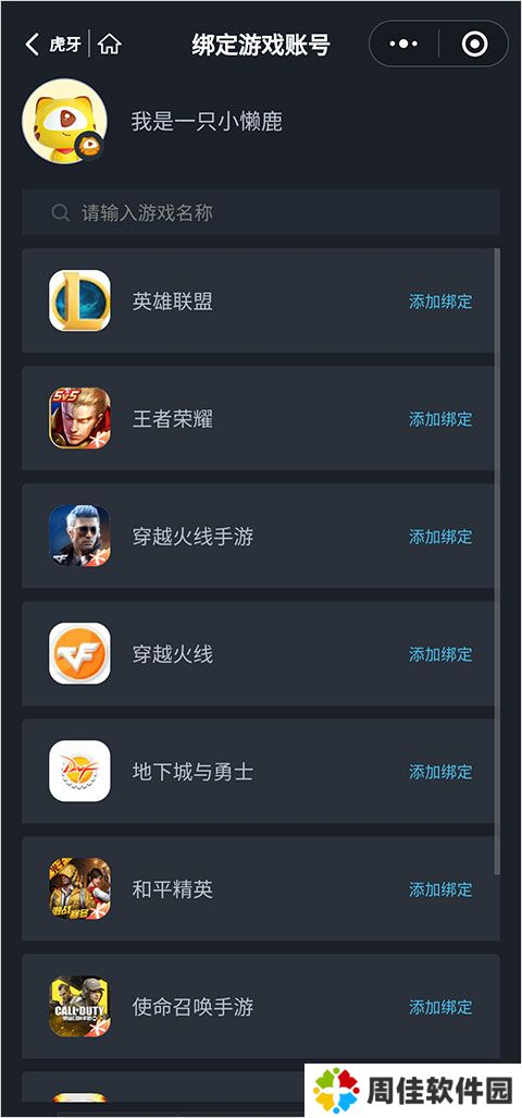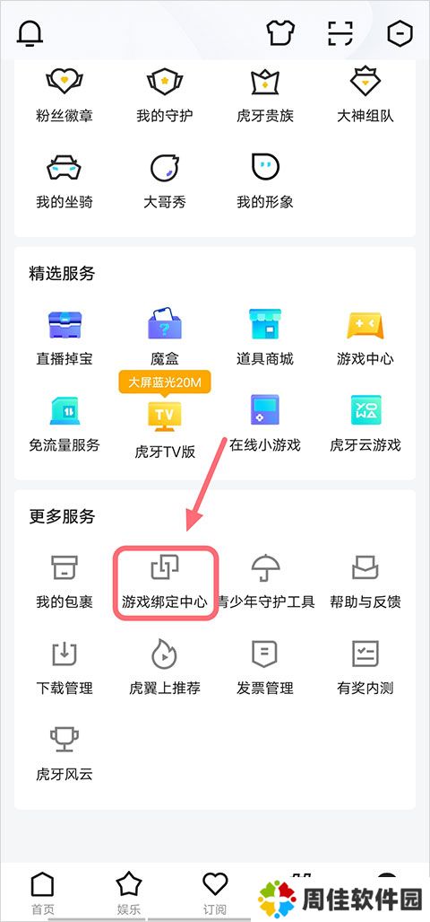 1、在虎牙直播我的界面点击“游戏绑定中心”