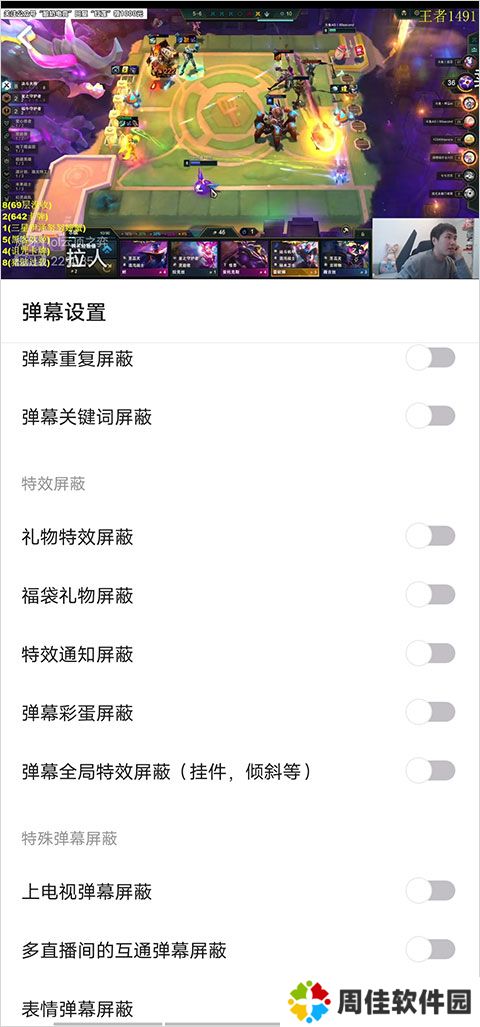 1、在直播界面点击直播画面会显示画面功能按钮,点击右下角的“弹幕设置”