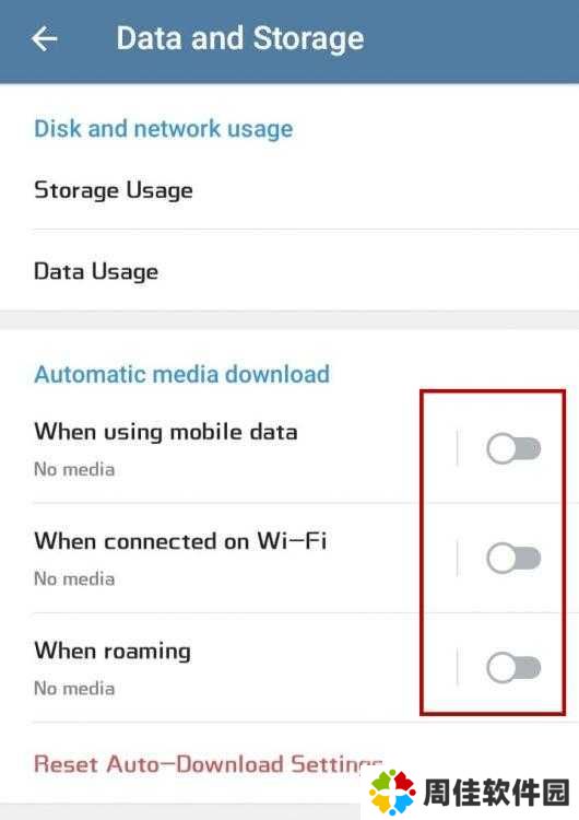 3、在Automatic Media Download的栏目,关闭所有自动下载。