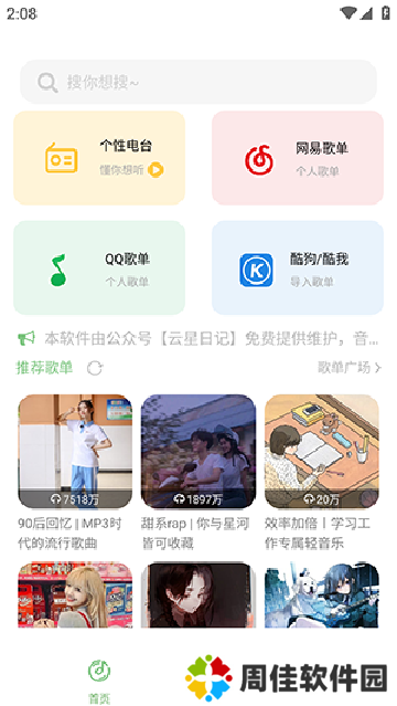 3、可以选择网易云歌单、QQ音乐、酷我或者酷狗中导入歌单,专属曲库永不丢失。