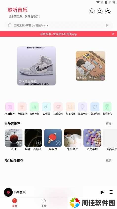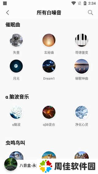 3、软件拥有白噪音的功能,众多白噪音能够免费听;