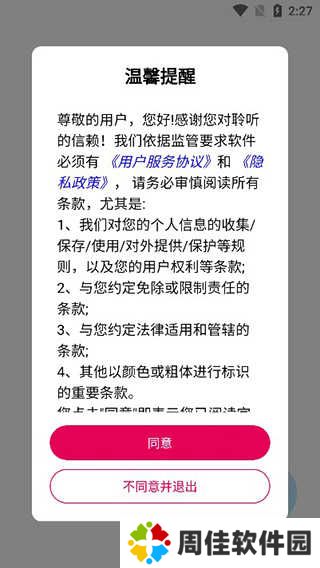 1、下载安装好本站提供的软件,进入之后同意下用户协议;
