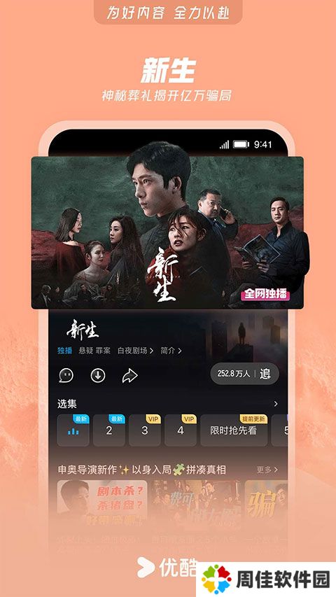 优酷免费版是一款在手机上追更电视剧的软件,不仅能播放时下热播的电视剧、电影、综艺等内容,还有优酷视频创作者发布的自制脑洞视频,让每位观众都能找到自己想看的视频作品。集全屏播放、视频缓存、快捷搜索等功能于一体,还会针对当前播放环境优化,让低端机也能享受媲美影院的追剧体验。