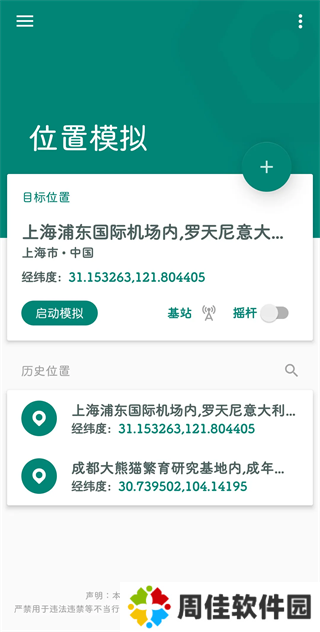 某些情况下点击启动模拟后会一直转圈,但实际上已经生效了,只需要将软件切换到后台查看位置是否改变即可。