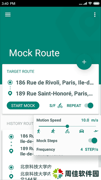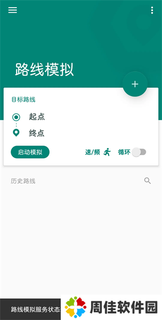 ③确定好路线后设置速度和步频模拟,如有需要可以打开循环,就是让手机一直模拟重复这段路线的移动,在某些条件下最好起点和终点画在一起,不然循环起来你懂的。