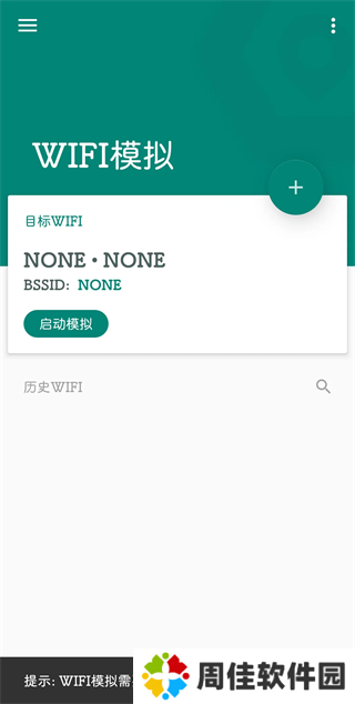 首次无论软件是否打开都可以直接连接WIFi,连接后手机只要不手动删除WIFi信息自然会有记录,以后只需要打开软件和手机的WIFi网络开关,选择WIFi模拟,点击+号添加自己想要模拟的WIFi环境后启动模拟即可。