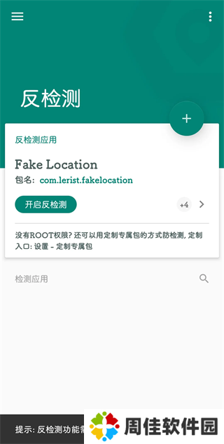 反检测:防止某个应用检测到FakeLocation,例如运动世界校园如果不做权限限制或者其他隐藏措施就会检测到手机安装有虚拟定位工具,限制软件的继续使用,该功能需要Root权限。