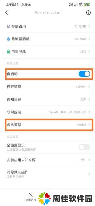小米手机:进入应用详情页,打开“自启动”开关,并把“省电策略”设为无限制,如下图所示