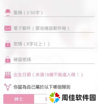 3、进入注册页面后,填写好相关的内容,昵称、电子邮箱、密码、确认密码、出生年月以及个人类别。
