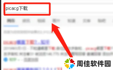 1、首先使用电脑打开一个空白的网页,搜索picacg下载。