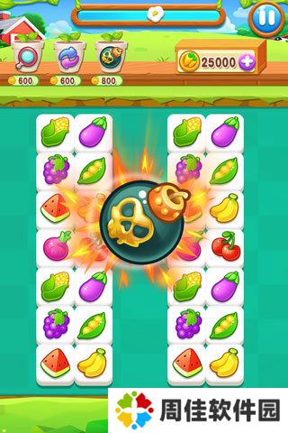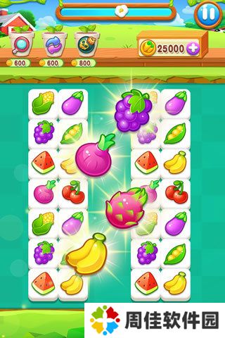 【轻松消除】玩家可以看到不同类型的水果,并可以连续消除两个相同的水果。这将会很简单。