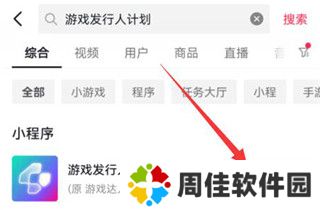 1、首先打开抖音,点击右上角搜索“游戏发行人计划”;