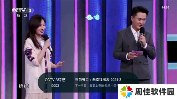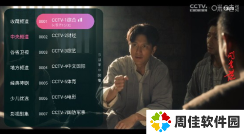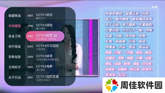 2.打开后软件自动播放,默认是央视频道,点左侧选择频道;