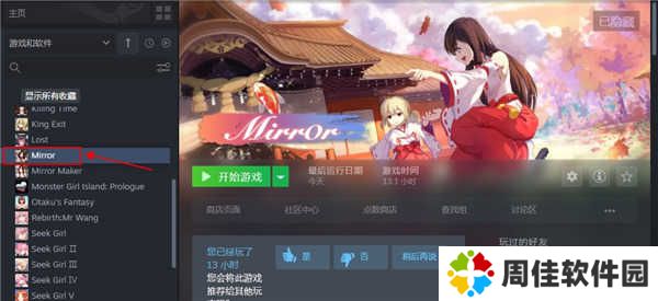 3、如果你找不到的话,那么也可以打开steam游戏,在库中的 Mirror上右键,当然前提是你购买了Mirror 这款游戏;