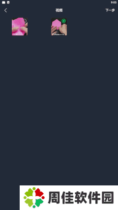 点击之后会打开一个新的页面,在这个新页面中选择需要处理的视频后点击右上角的【下一步】