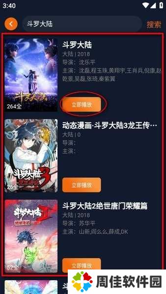 3、一般搜索都会出现多个结果,尤其是系列比较多的,选择要看的动漫,点击“立即播放”;