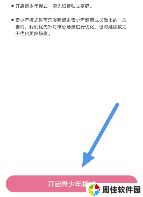 3、选择界面底端【开启青少年模式】按钮点击开启,即可开启青少年模式。