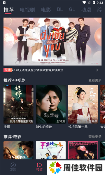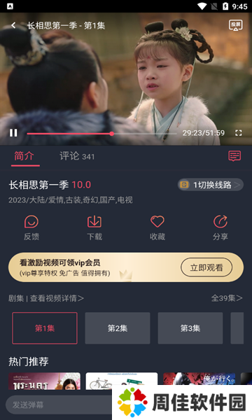 2、支持全屏播放,可投屏到电视等大屏设备进行挂科,多条线路切换,随时观看高清视频。