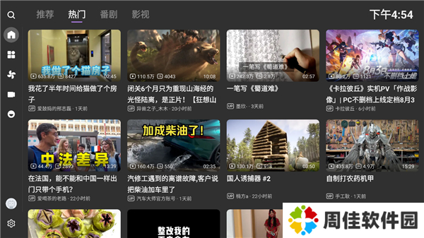 1、进入软件首页,里面提供了推荐、番剧、热门、影视等等功能;