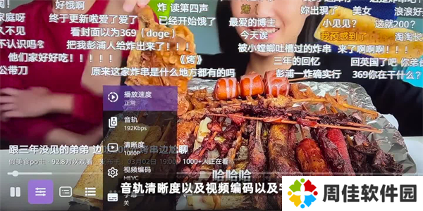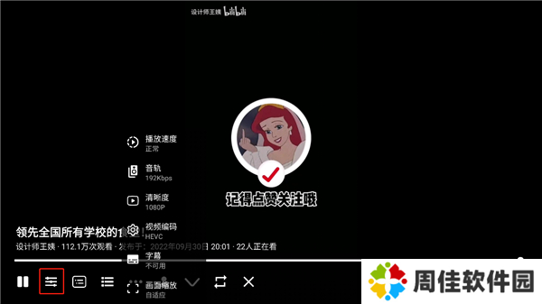 5、另外可以来看一下工具栏,这个是它的速度、音轨清晰度以及视频编码以及字幕,这里还有弹幕的开关以及选值以及非常贴心一键三连。