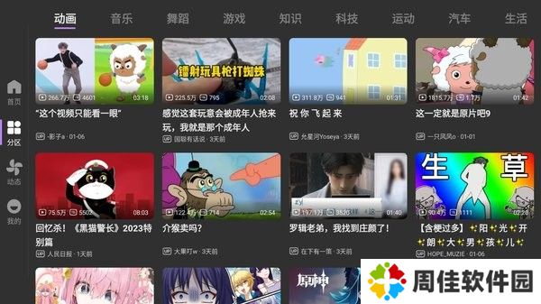 5、点击分类按钮,里面提供了动画、音乐、舞蹈、游戏、知识、科学等等不同类型的小视频;