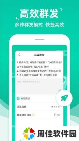 1、在首页点击开始群发,编辑好消息后点击群发,会跳转到微信界面,右下角会有悬浮窗显示,点击开始群发即可。