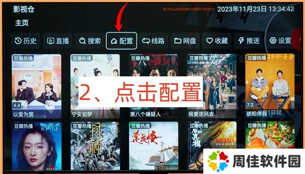 4、安装好后,打开影视仓,找到设置——配置。这一步很重要哦!