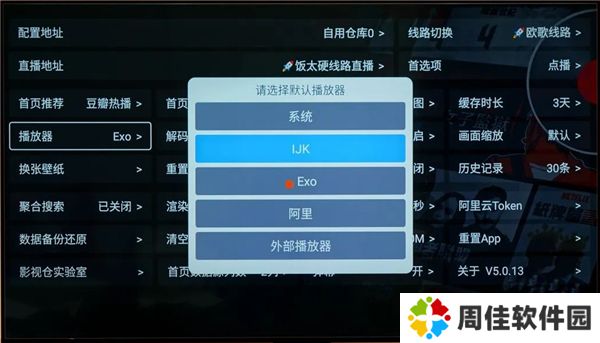 另外,在播放器设置这里,默认是Exo播放器,如果经常看直播的话,可以更换IJK播放器,因为Exo在直播方面稍微差一点,不过日常观影的话,可以选择Exo播放器。