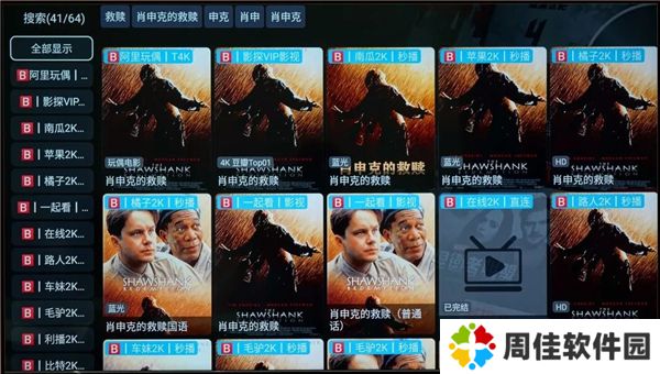 这是影视仓的搜索结果界面,以及一些直播画面。
