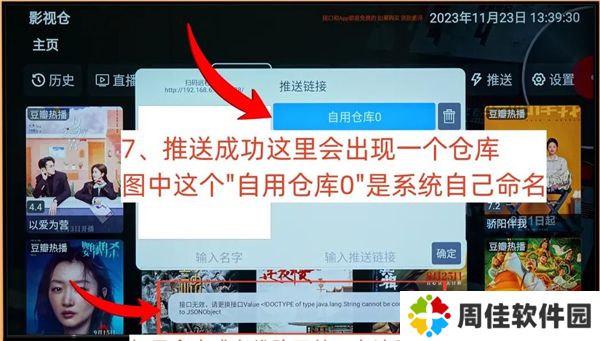 安装完成tvbox、影视仓等软件之后,打开影视仓,点击配置,电视屏幕上会出现含有二维码的配置界面。