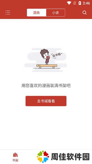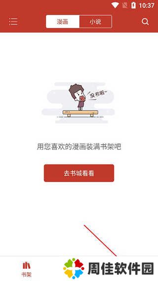 2、在书架当中暂时没有漫画,用户可以在书城当中寻找;
