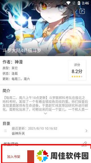 4、在漫画的界面当中,用户可以加入书架、立即阅读以及缓存;