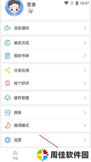 2、在这个页面当中可以看到浏览记录和下载的小说,此时点击设置。