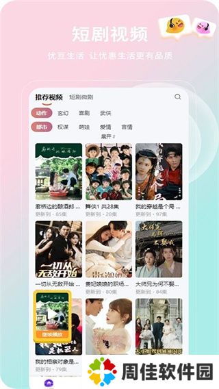 优豆生活app是一款专为短剧爱好者设计打造的高清短剧手机播放软件,致力于为用户提供更多优质的高分短剧作品。优豆生活高清短剧安卓手机版软件为广大的用户精选了海量的高质量短剧作品,涵盖了都市热血、甜宠言情、赘婿逆袭等多种不同题材的短剧。快去下载优豆生活app,享受短剧的无限魅力。