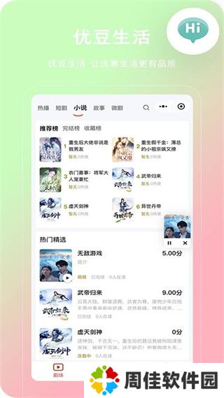 优豆生活app内为用户提供的海量短剧作品,大多数短剧都是根据热门小说改编而来的。让你可以在看小说的同时,去欣赏更多优质短剧。